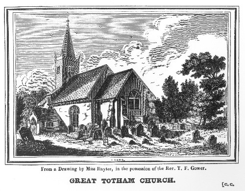The church’s early origins help us to understand how long it is has been here, because we know that between 1181 and 1186 it was granted to the Nunnery of St Mary Clerkenwell by Maurice de Totham; so there has been a church here since at least 1186. The earliest recorded vicar was called Thomas who, in 1285, was charged with killing Simon Godyng at Havering. He and his accomplice, the vicar of Goldhanger, were imprisoned in Newgate. The actual building, however, is less easy to date. Most churches were rebuilt at least once in the Middle Ages, or extended so much at different times that little of the original structure was left. Frederic Chancellor, writing about the church in the 19th century, thought that some of the stones at the south-east corner of the chancel were Norman, but other authorities say they are 13th century. The south wall of the nave and the base of the tower are 14th century; that is the date of the middle window in the south wall (which was originally in the chancel), and the tower window, as well as of the church’s two piscinas (one in the chancel, one in the south wall of the nave). Much of the timberwork of the nave and chancel roofs belongs to the 15th century, and the large south window to the early 16th, although its stained glass, by Powell & Son, dates from 1913.
